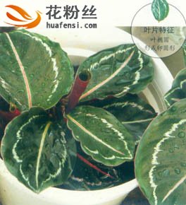 多年生常绿草本,株高30~60厘米。叶椭圆形或卵圆形叶薄革质,叶面青绿色,叶两仙具羽状暗绿色斑块,近叶缘处有圈玫瑰色或银白色环形斑纹。