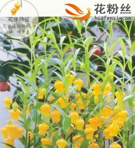 多年生球根草本植物。株高约60厘米。叶片互生,线形或披针形,无柄。花冠球状钟形,似宫灯,橘黄色,下垂。蒴果。