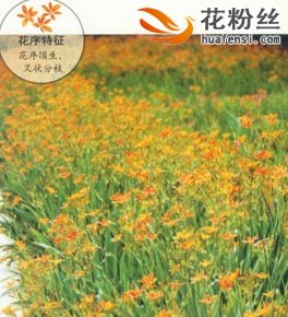 多年生草本植物,株高100~150厘米。叶互生,嵌迭状排列,剑形。花序顶生,叉状分枝,每分枝上着生数朵花,花橙红色,上有紫褐色斑点。蒴果倒卵形或长椭圆形。