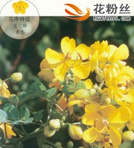 落叶小灌木,多分枝,无毛。羽状复叶,小叶倒卵形或倒卵状长圆形,先端圆钝,基部渐狭,偏斜。总状花序生于枝条顶端的叶腋,常集成伞房花序状,花鲜黄色。荚果圆柱状。