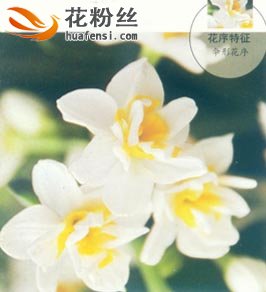 多年生草本,高20~80厘米,地下部分具肥大的鳞茎。卵形或球形,状如蒜头,植物学称之为有皮鳞茎花卉,茎块外一层一层的褐色膜状鳞叶(苞片)包裹着鳞茎。具长颈。叶基生,与花茎同时抽出,带状线形或近圆柱状,长20~40厘米,宽 8~15毫米,顶端钝,全缘,粉绿色,多数排成互生二列状。花单生或多朵,呈伞形花序,平伸或下垂,下具膜质总苞,花茎直立圆筒状或扁圆筒状,中空花多为 黄色白色或晕红色,花被管细,灰绿色,近三棱形,长约2厘米,雄蕊6枚,雌蕊1枚,子房下位,着生于花被管内,子房3室,每室有胚珠多数,花柱长,柱头3裂。蒴果,室背开裂。原种多花水仙(法国水仙),分布广,自地中海到亚洲东南部。鳞茎大,一葶多花,3~8朵,花径3~5厘米,花被片白色,倒卵形,副花冠短杯状,黄色,芳香。